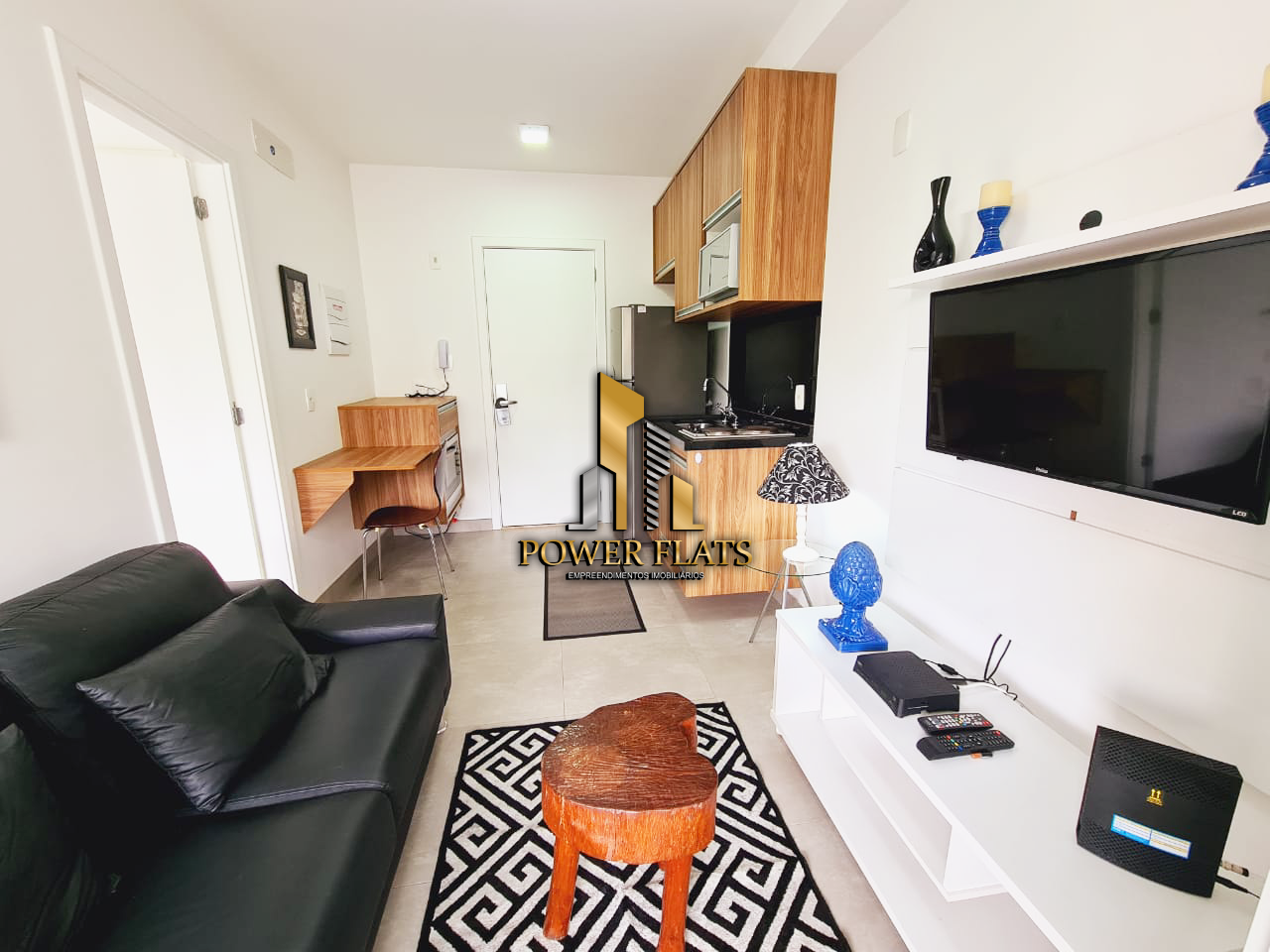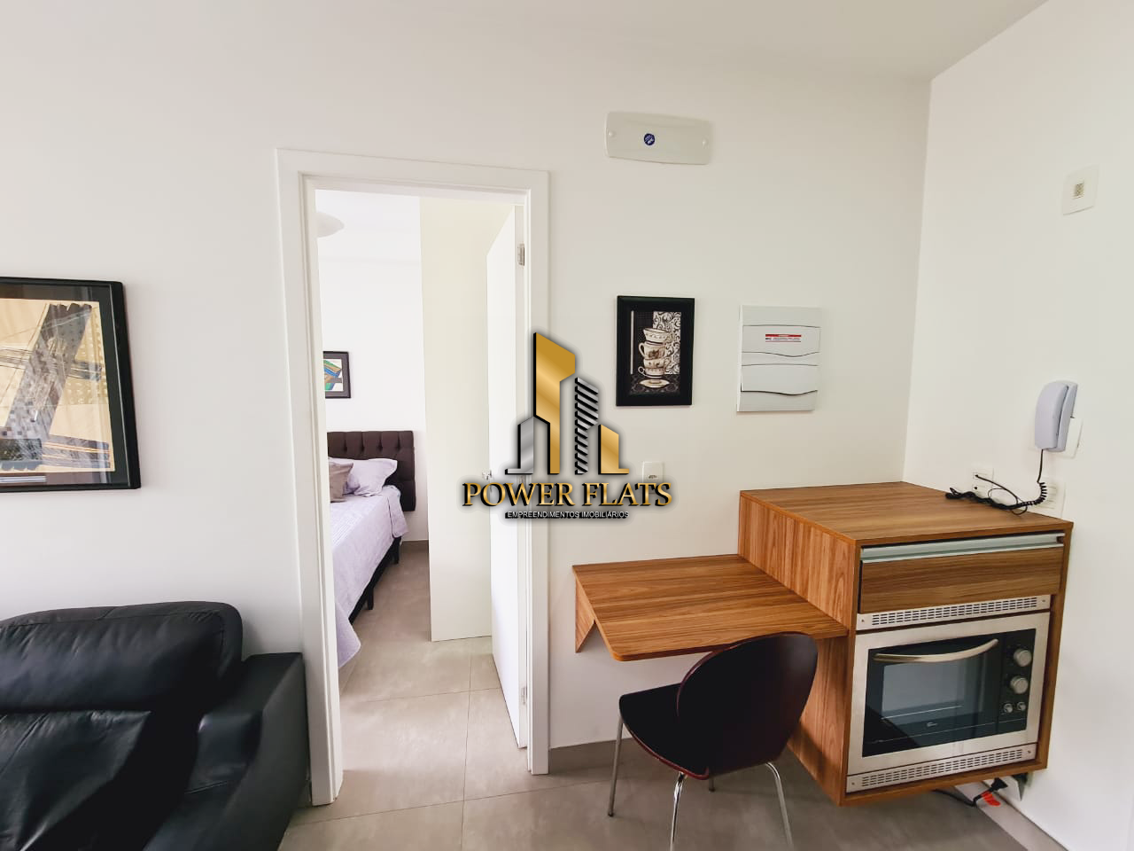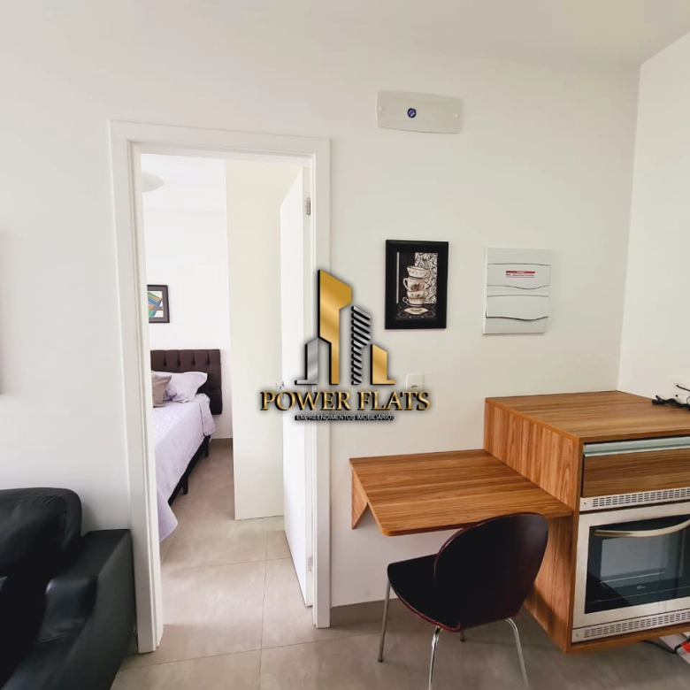 O Cosmopolitan High Garden oferece flat mobiliado de 40 m², com 1 dormitório (suíte), sala com varanda, cozinha americana equipada, banheiro e 1 vaga de garagem, pronto para morar. Ar-condicionado, TV a cabo e internet já inclusos.