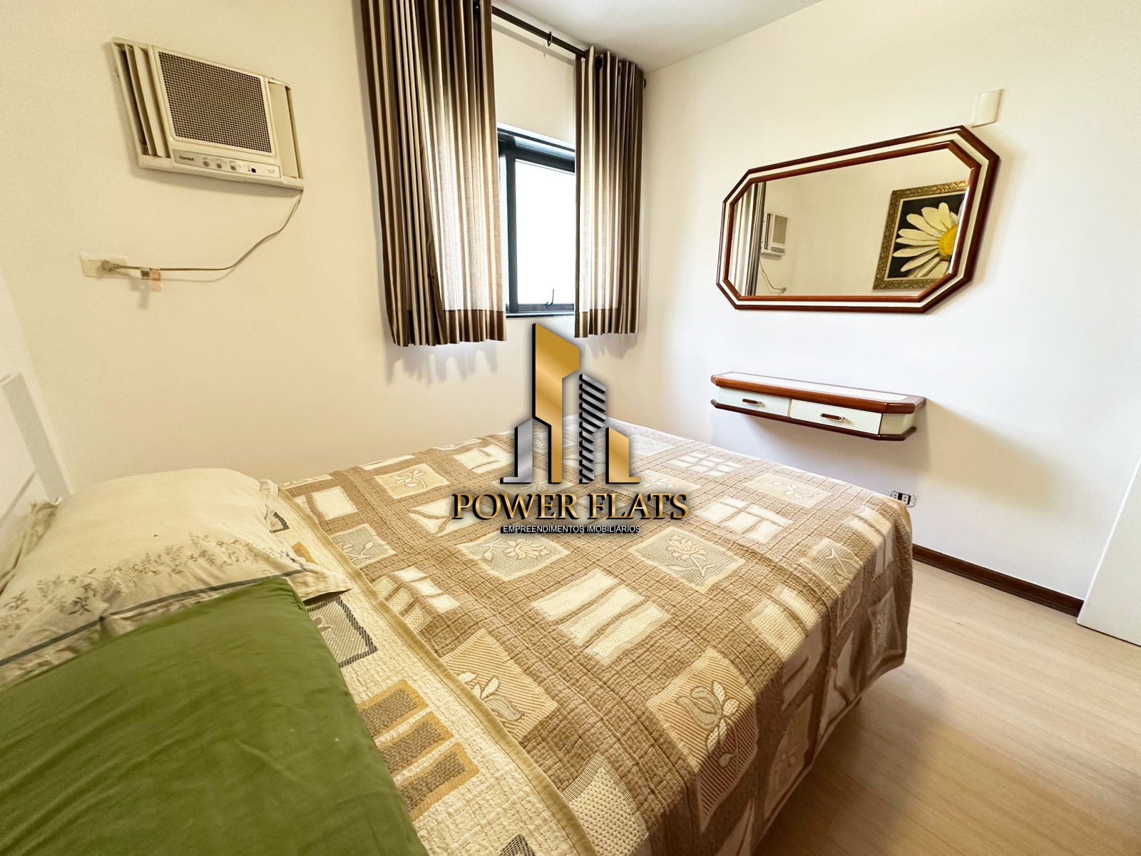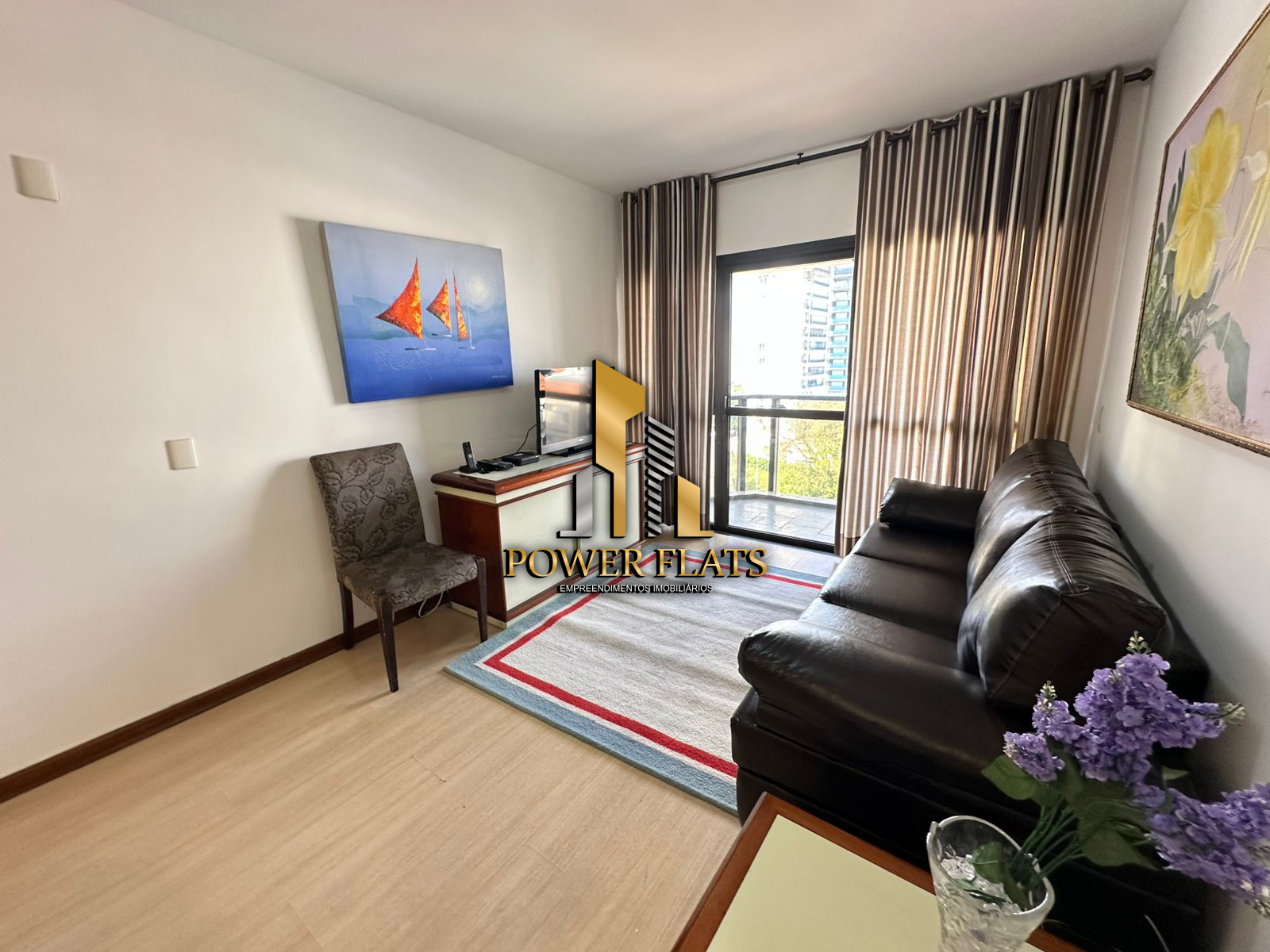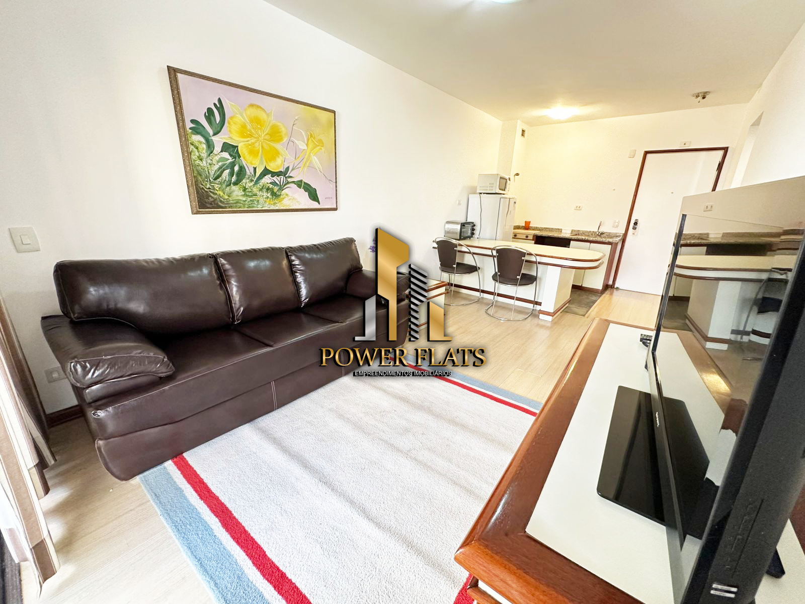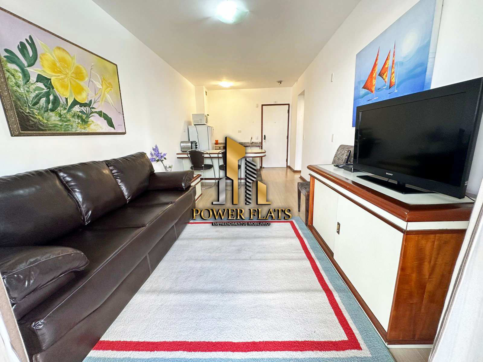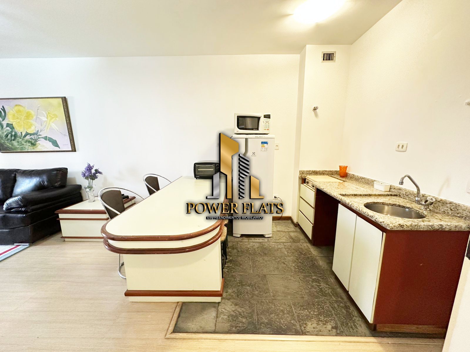 O The Plazza oferece flat mobiliado com 1 dormitório, 1 vaga de garagem, sala ampla, cozinha americana equipada e 1 banheiro, pronto para morar com conforto e praticidade.