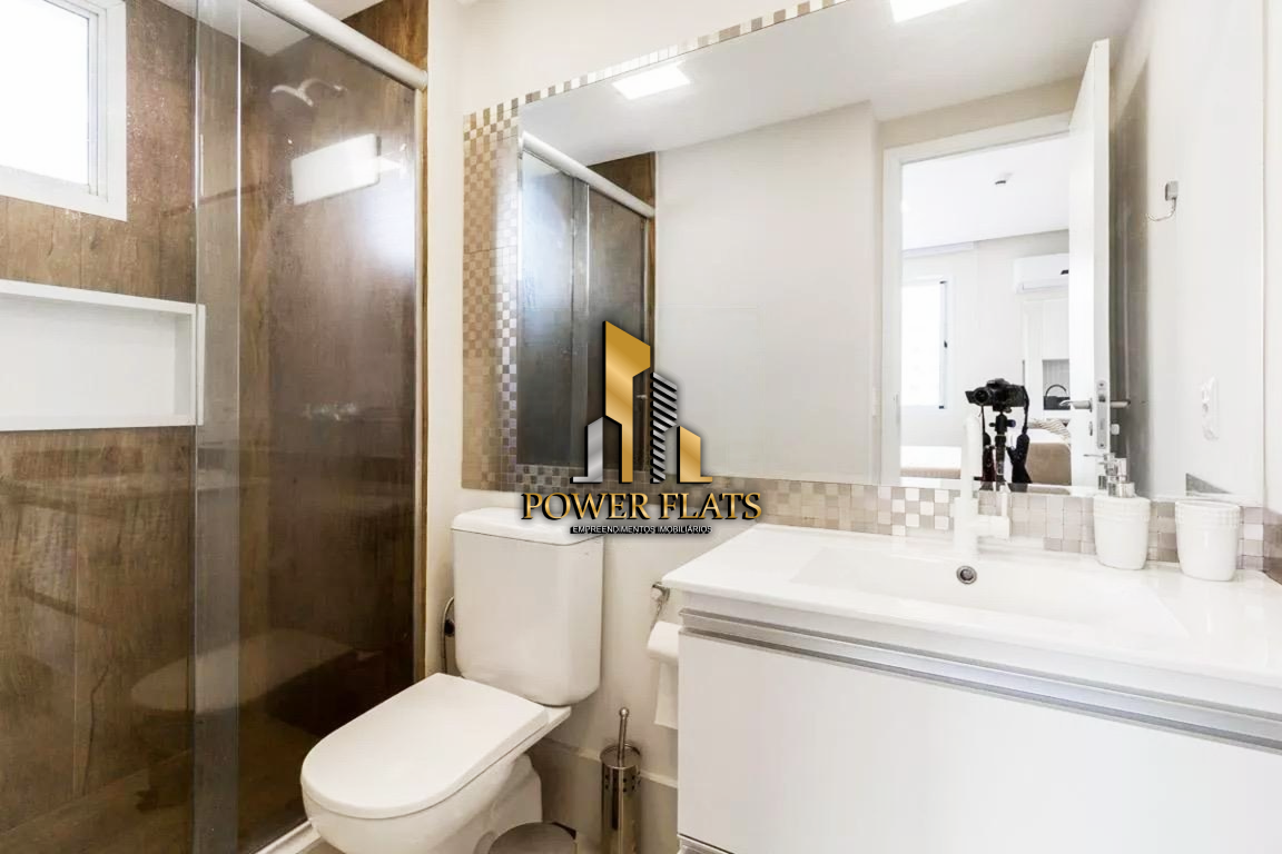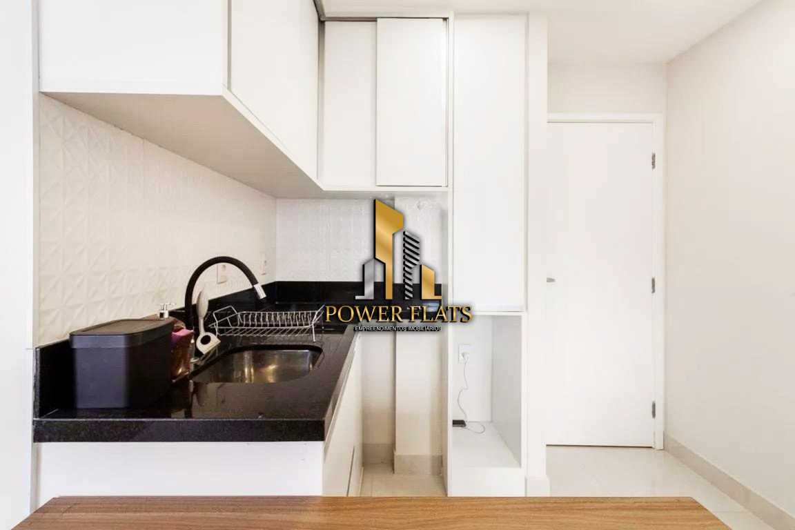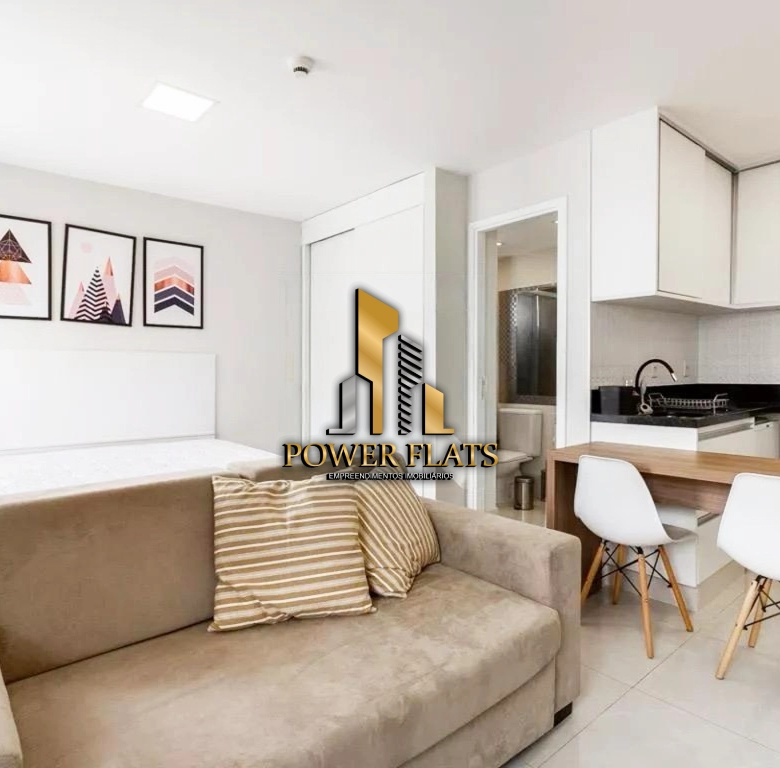 O imóvel possui 1 dormitório (suíte), sala com varanda, cozinha americana equipada, ar-condicionado e 1 vaga de garagem, ideal para quem busca praticidade, conforto e estilo em São Paulo.