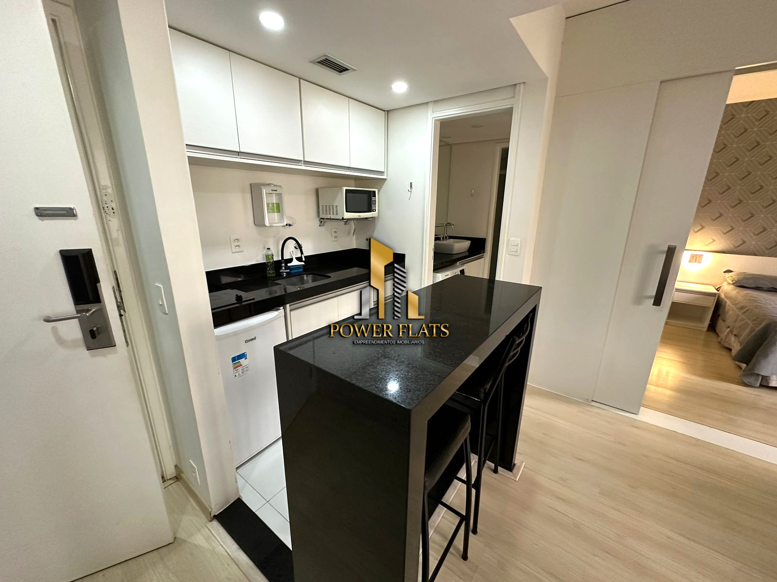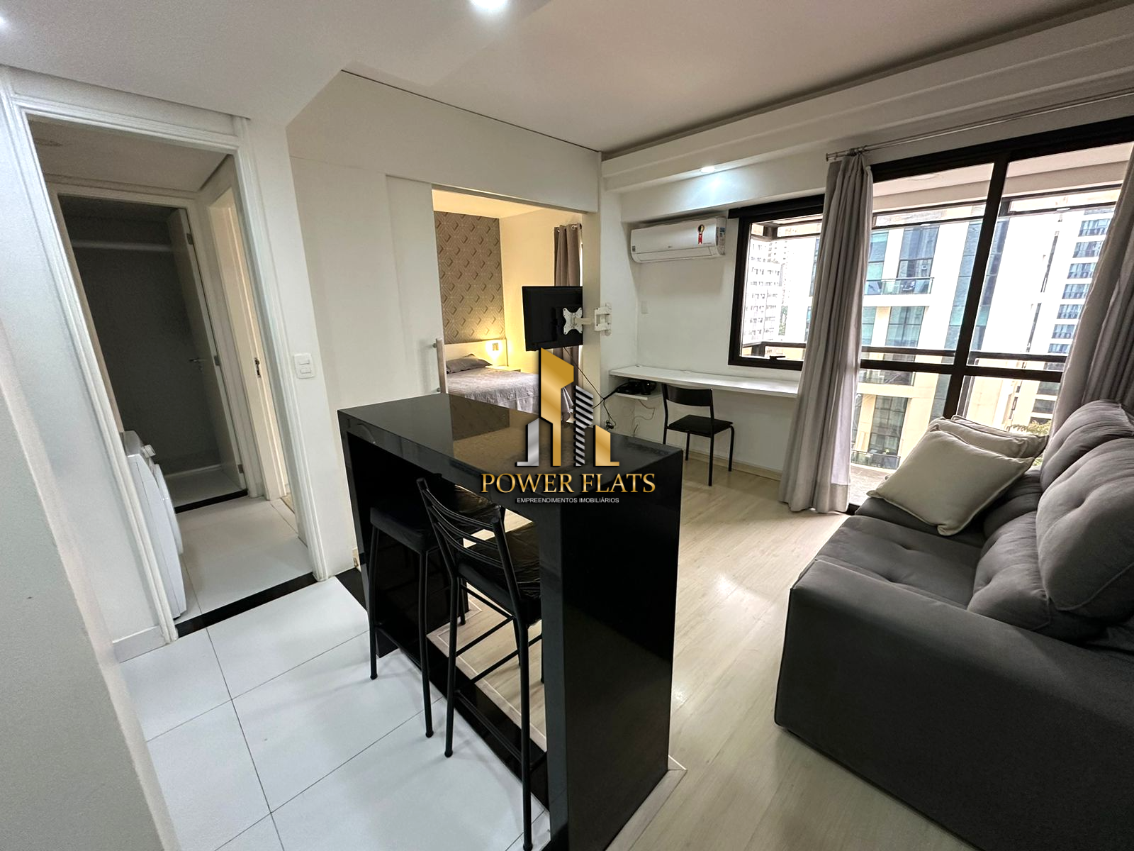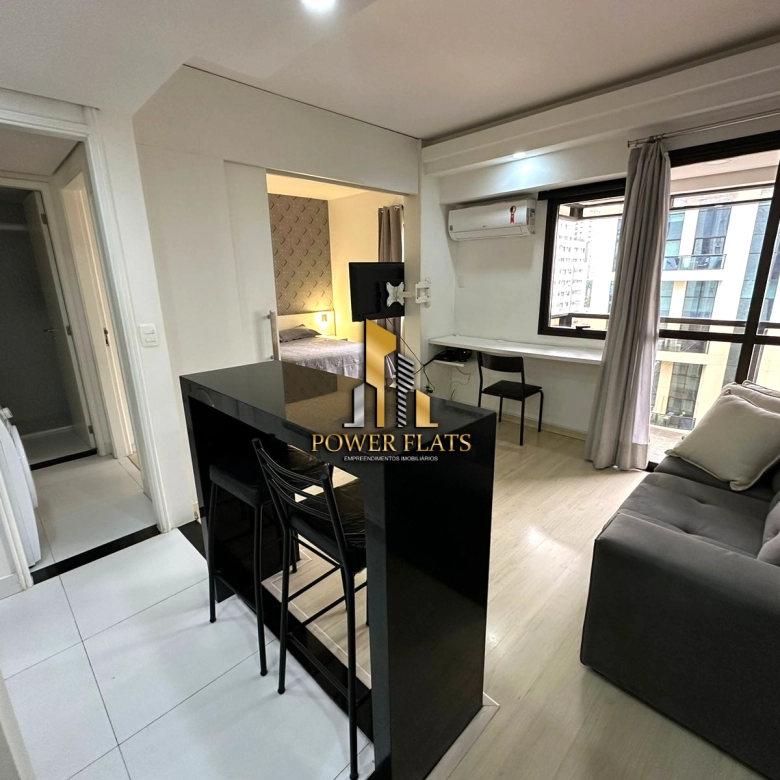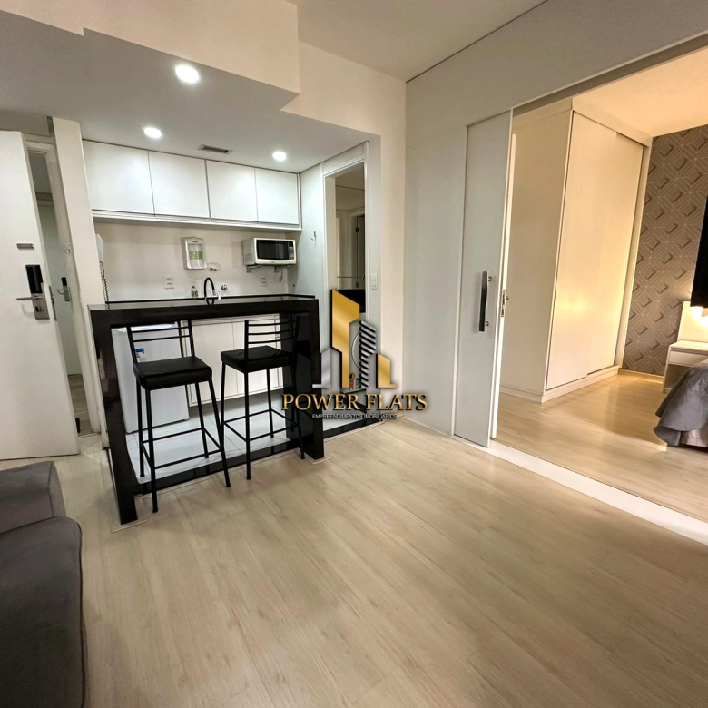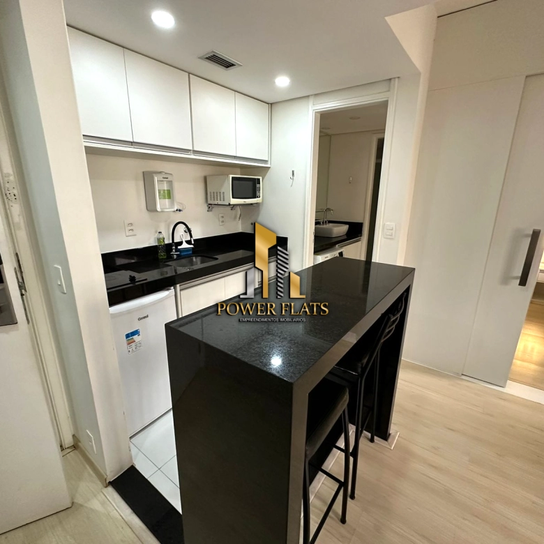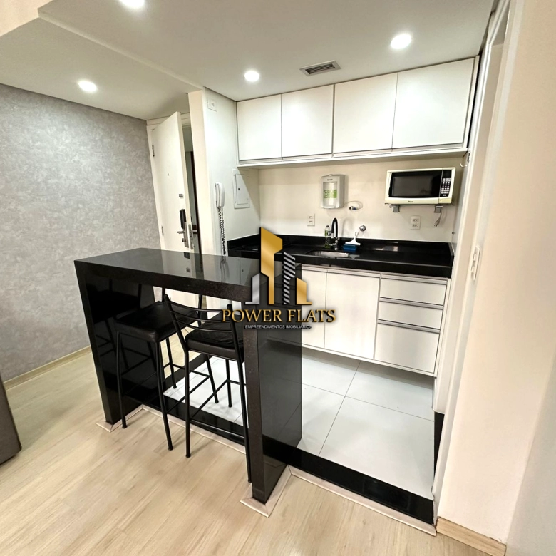 O imóvel possui 24 m² de área útil, com 1 dormitório, suíte, banheiro, varanda e 1 vaga de garagem. O flat conta com ar-condicionado, cozinha americana, closet e está totalmente mobiliado, ideal para quem busca praticidade e conforto em São Paulo.