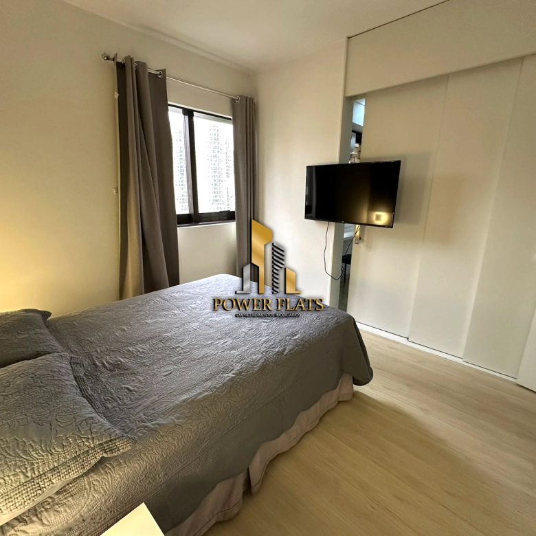 Flat mobiliado disponível para aluguel em São Paulo, no Condomínio Quadra Ibirapuera Intelligent Flat (QI), localizado na Av. Ibijaú, 364 – Moema, Vila Uberabinha.