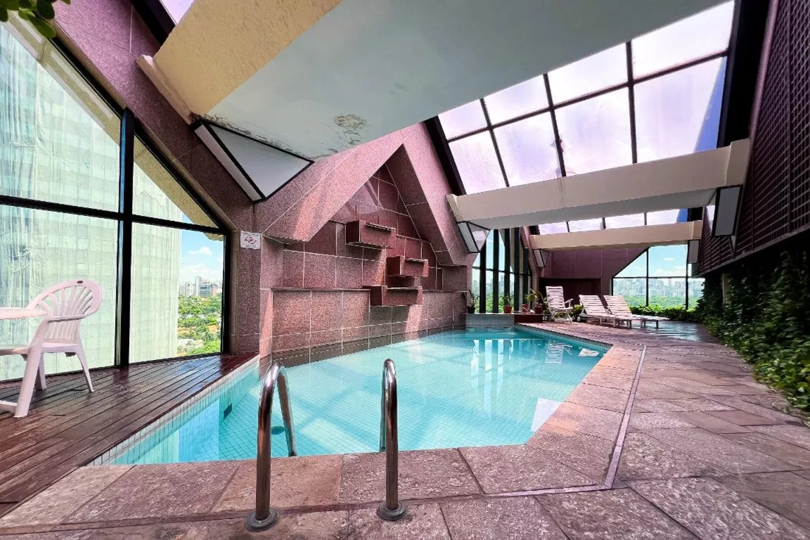 Entre os diferenciais, destacam-se piscina, academia e lavanderia.