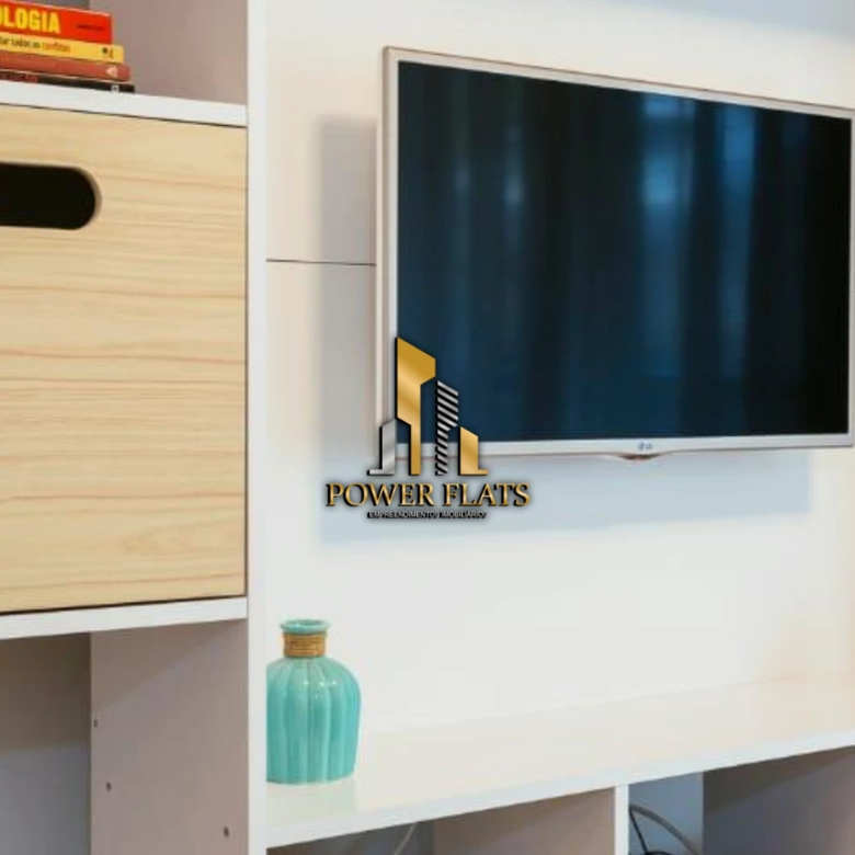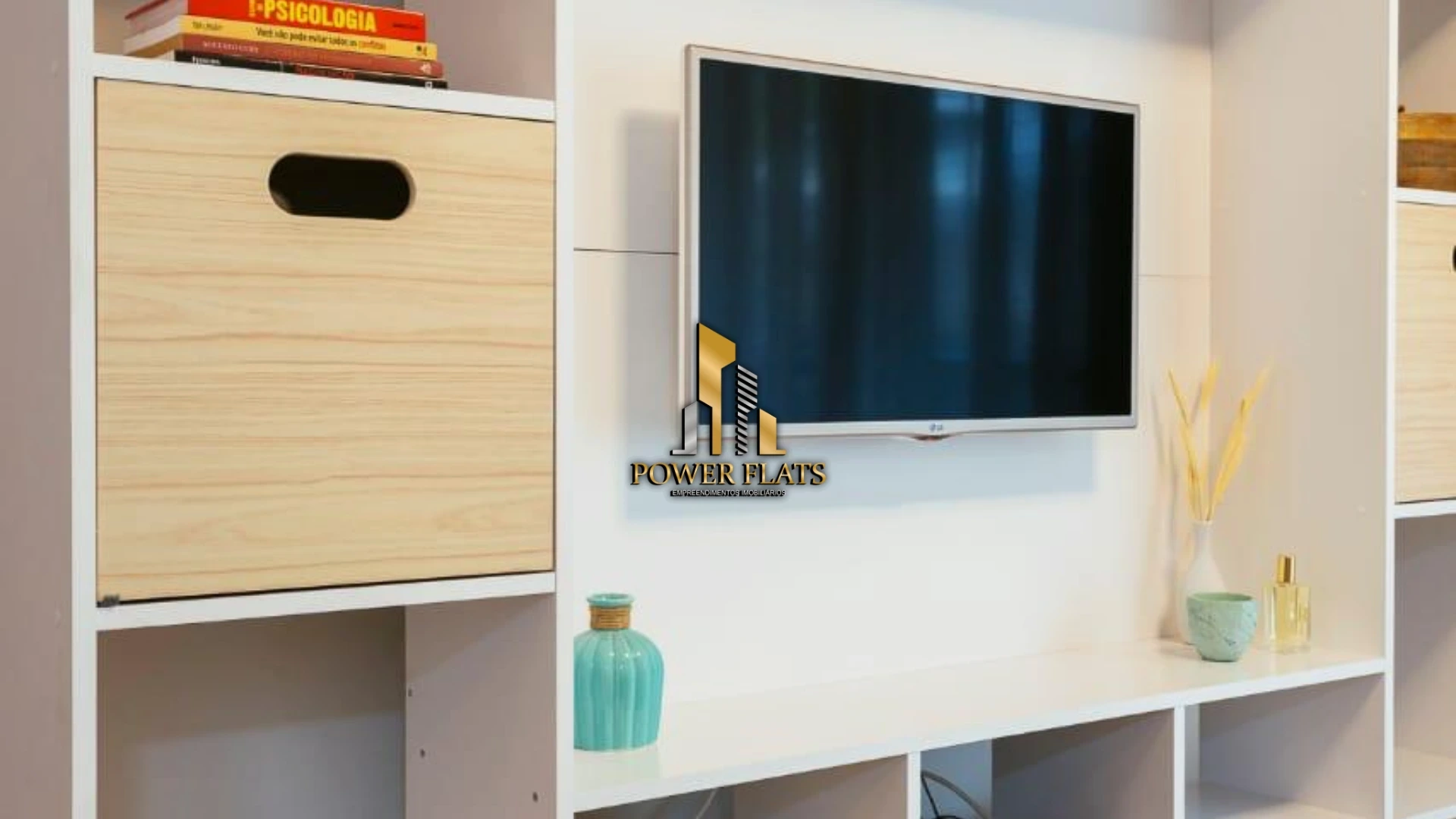 Também conta com ar-condicionado, armários embutidos e cozinha americana.