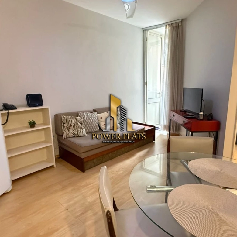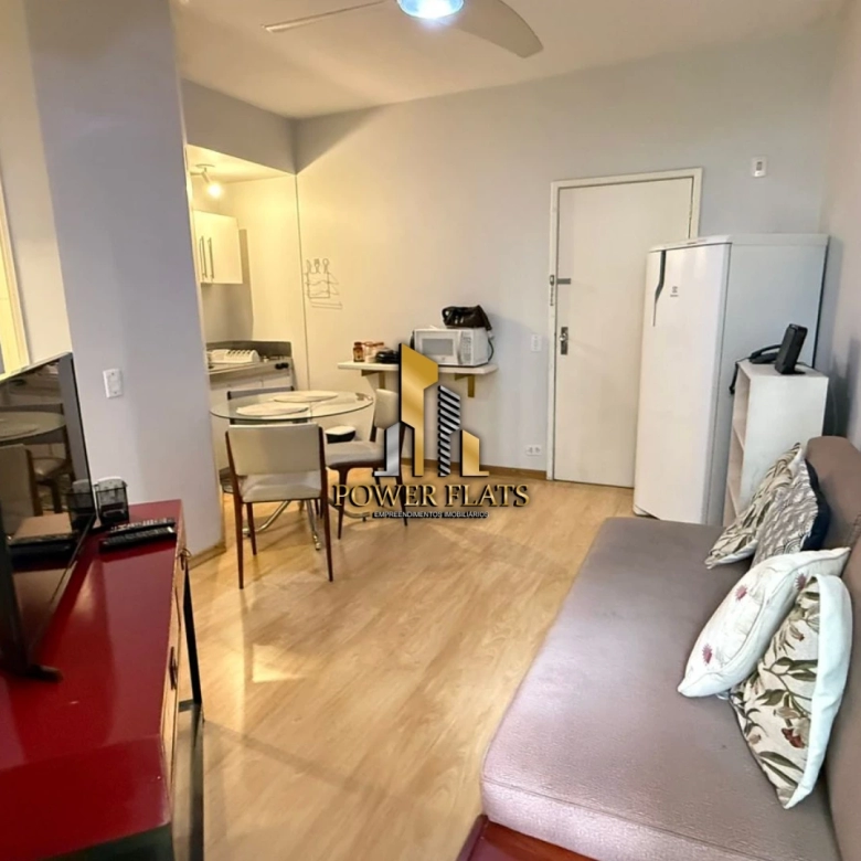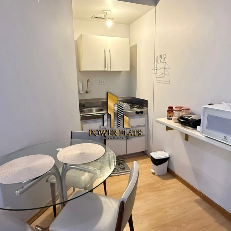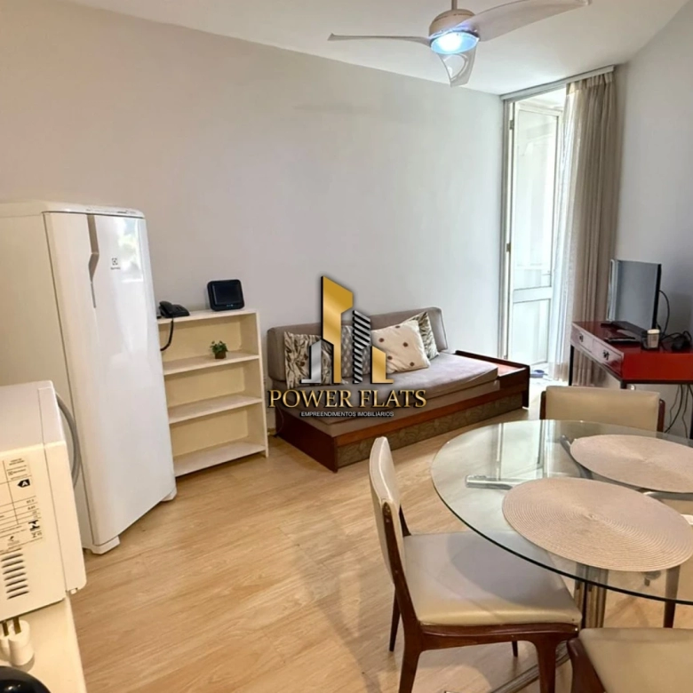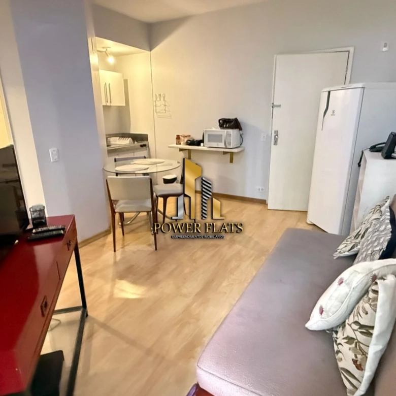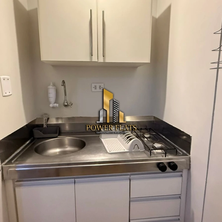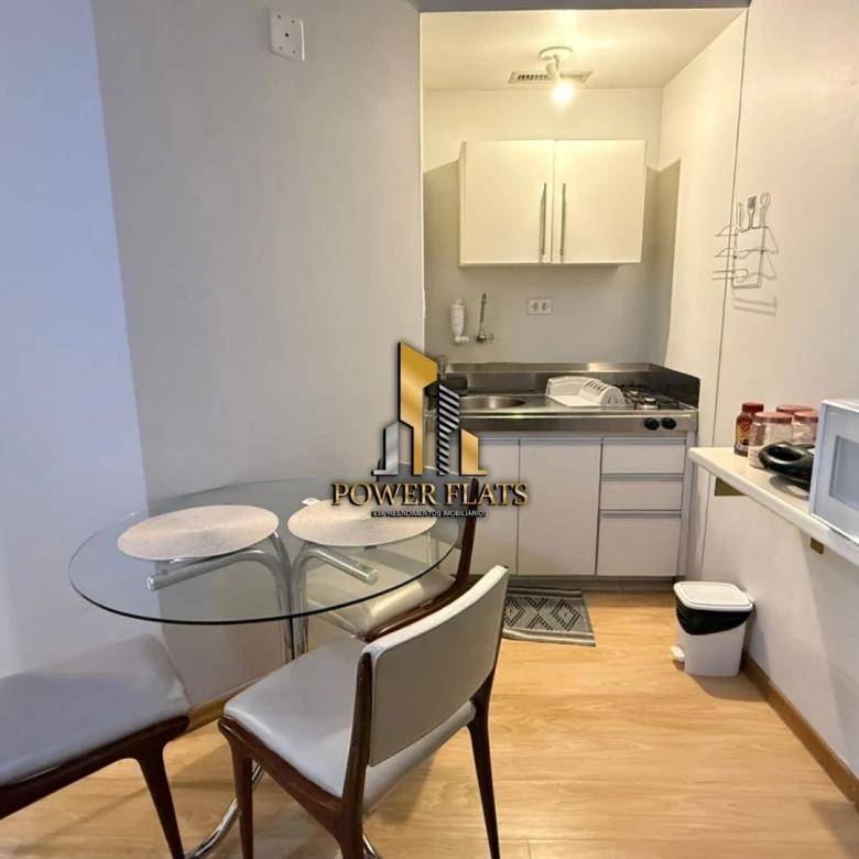 O flat conta com 1 suíte, cozinha americana equipada, armários planejados, ar-condicionado, internet, TV a cabo e 1 vaga de garagem.