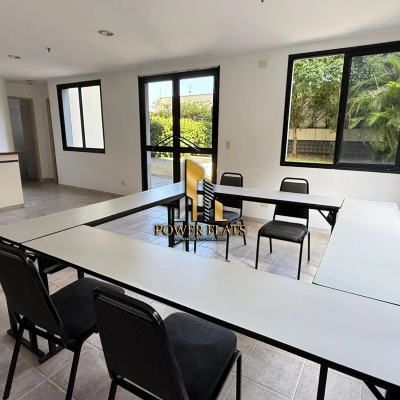 Além disso, o imóvel conta com ar-condicionado, armários embutidos e cozinha americana.