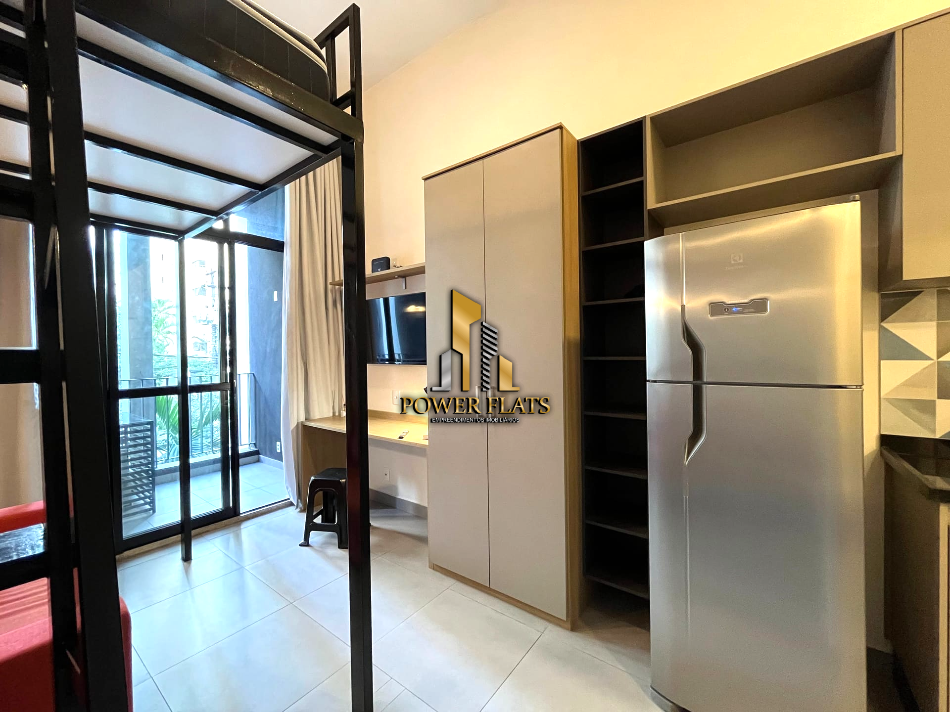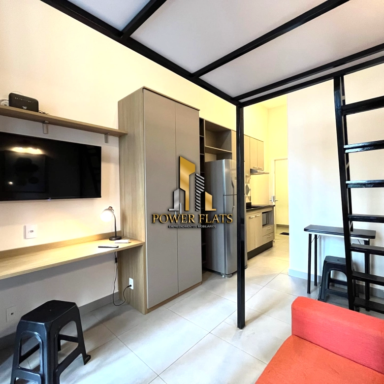 O studio conta com cozinha equipada, ar-condicionado e mobiliário completo (se aplicável), tornando a vida mais prática e confortável.